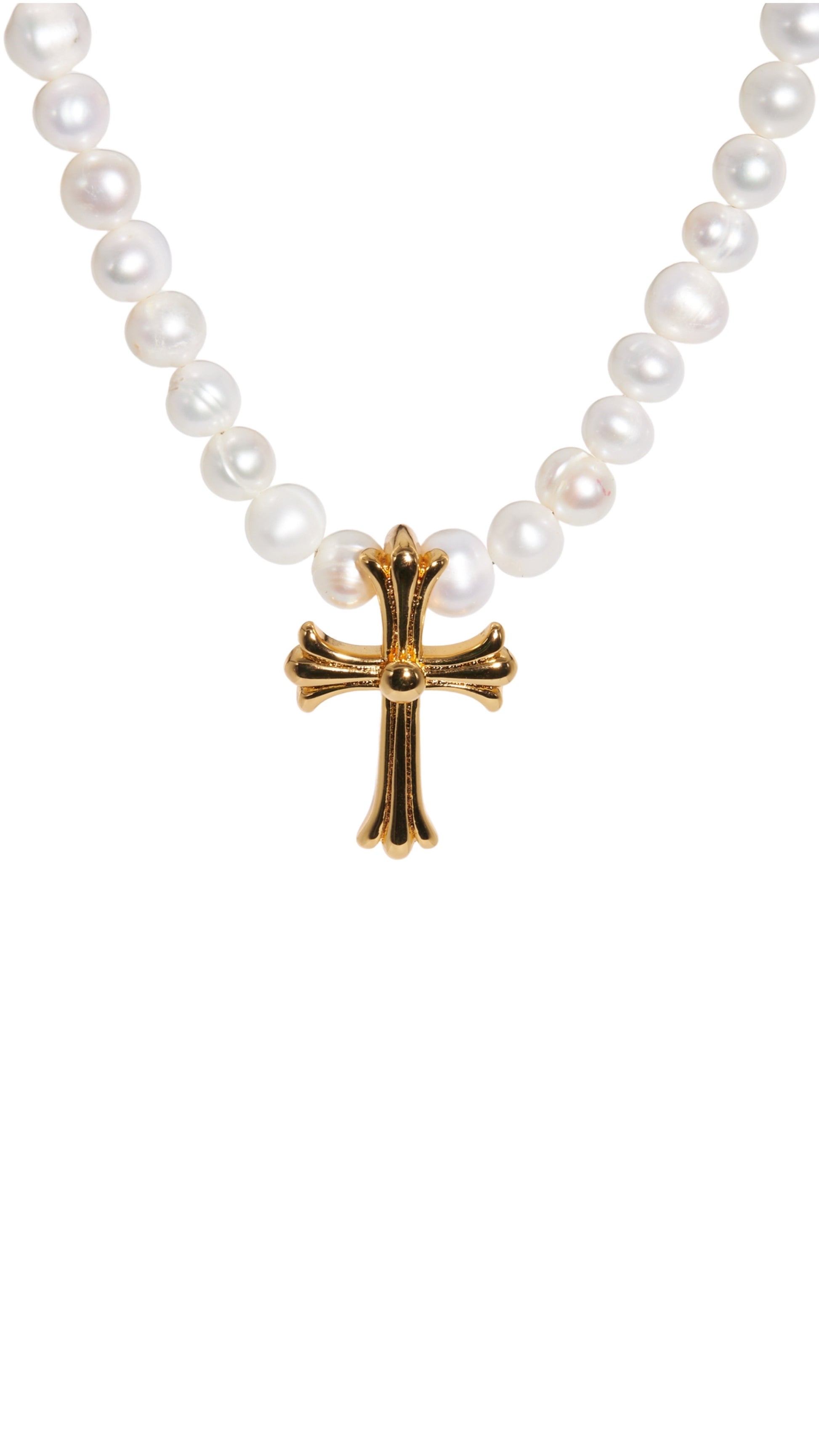 Add some some class to your jewelry box in our "Class Act" pearl cross choker. This handmade adjustable choker is made with REAL fresh water pearls to last a lifetime with proper care.