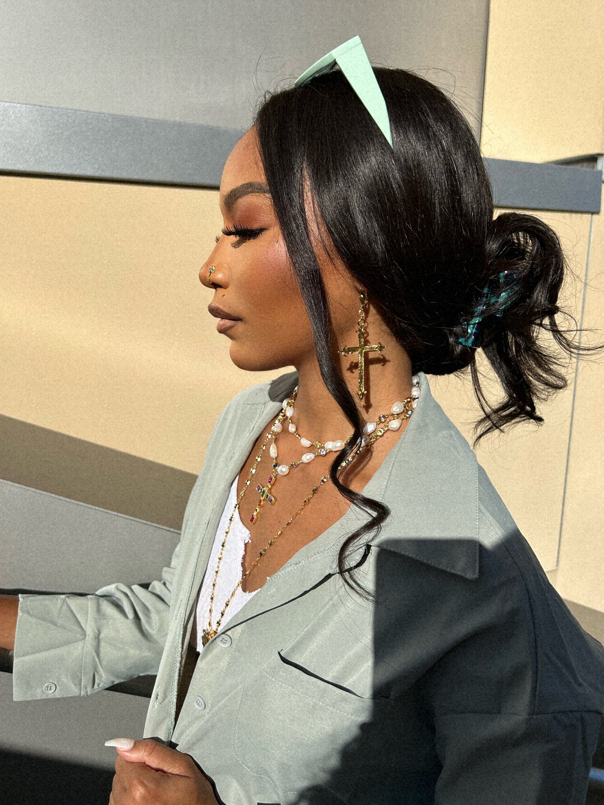 Elevate your look with this sophisticated piece, comes with not one but two adjustable chokers, allowing you to wear it at your preferred length and style.